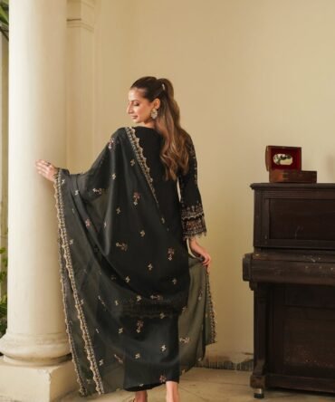 MANNAT 3PC EMBROIDERED VISCOSE SUIT (CHARCOAL)
