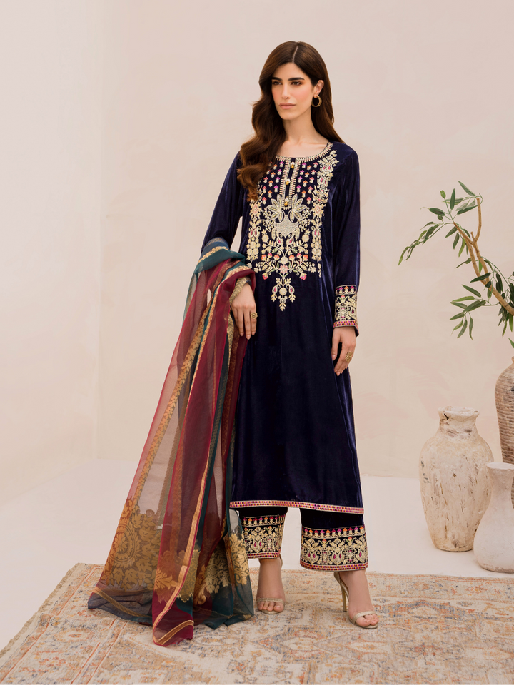 GARNET 3 PIECE EMBROIDERED VELVET SUIT (MAHIRA)